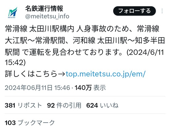 【画像】太田川駅の人身事故、この人ではないかとXで話題に