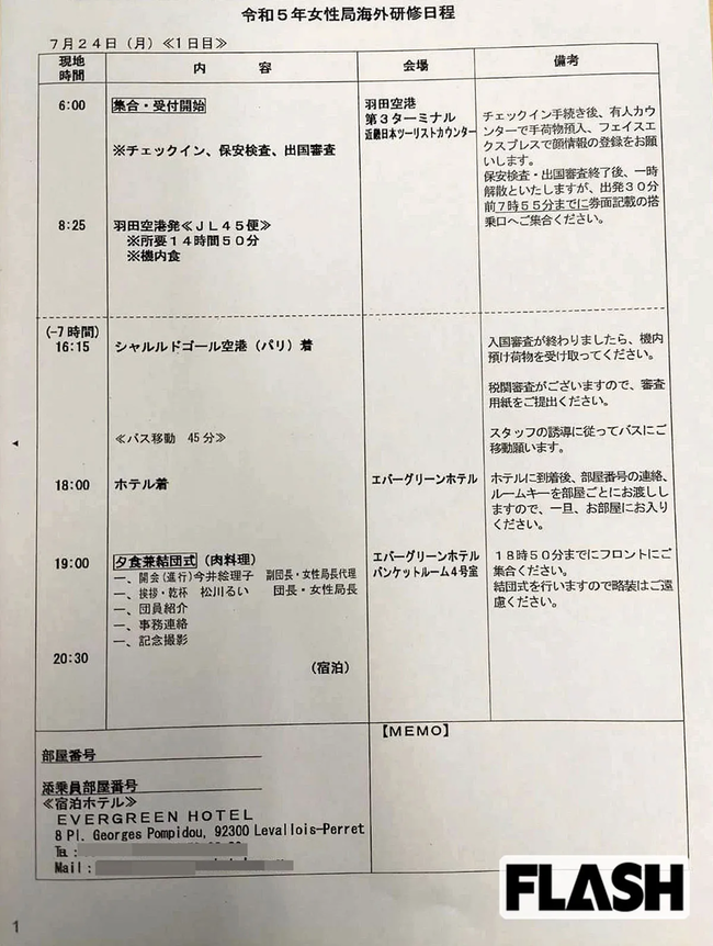 【画像】自民女性局のフランス旅行、日程表を入手