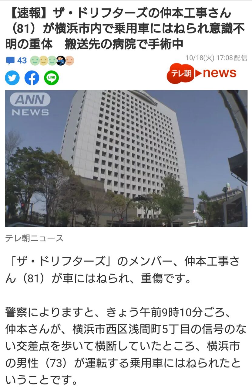 【まとめ】仲本工事、意識不明の重体です…????????????