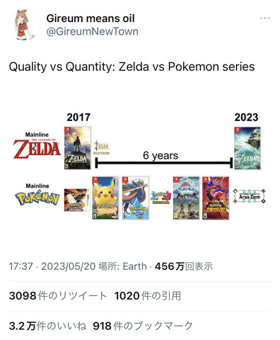 海外でバズってるポケモンとゼルダの比較画像がこちら