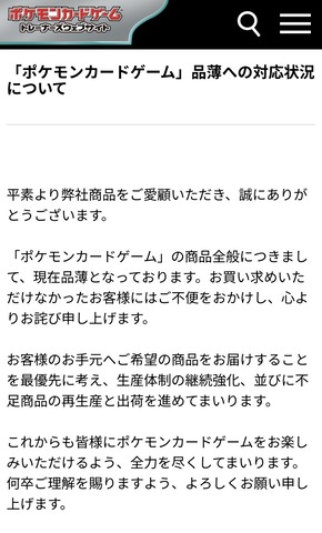 ポケカ公式がコメント、品薄への対応状況について