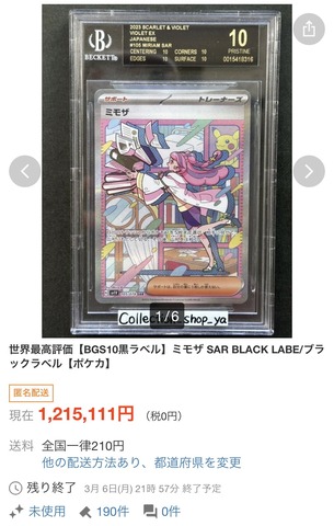 ポケモンカードのミモザさん120万円で落札されてしまう…