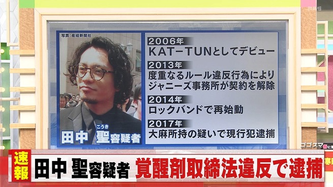元KAT-TUNの田中聖容疑者、覚醒剤取締法違反の疑いで逮捕