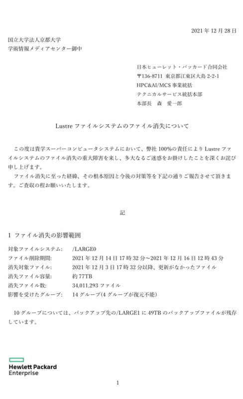 HP(ヒューレット・パッカード)、京大のスパコンデータを77TB吹っ飛ばしてしまう→謝るから許して!!!