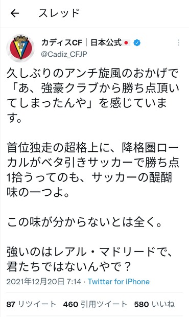 【悲報】サッカークラブ公式「強いのはレアル・マドリードであって君らでは無いんやで?」