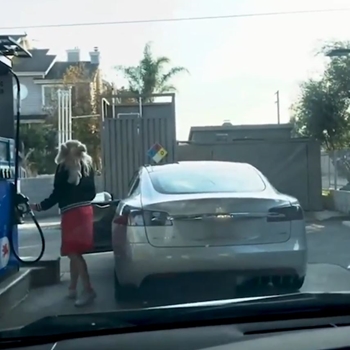 【動画】女さん、電気自動車でガソリンスタンドに来てしまう