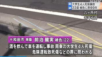 元大学生(22)、飲み会帰りに軽自動車で暴走、同乗者4人を死傷させ懲役9年