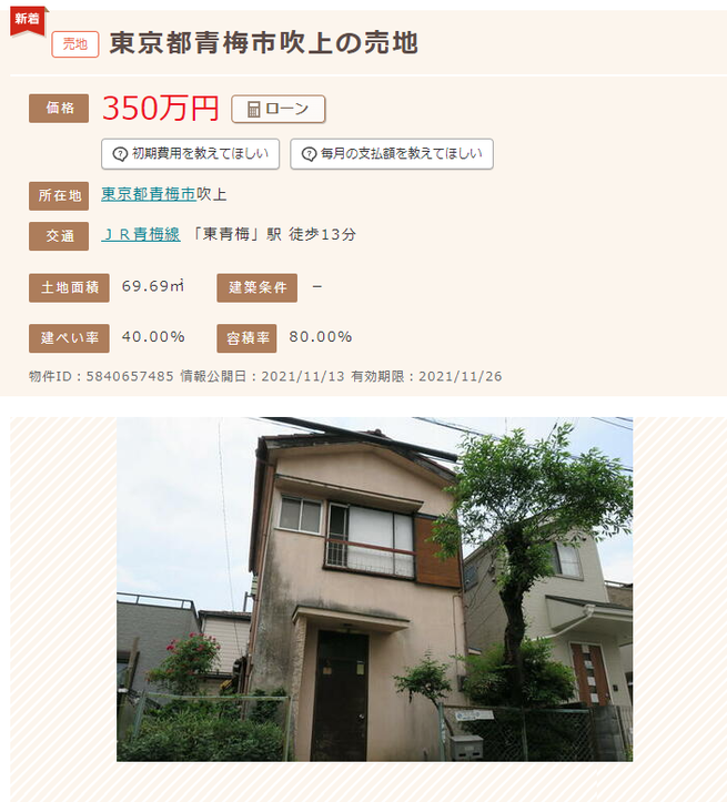 東京都かつ戸建てで350万円!しかも家族2人まで付いてくる優良物件が掲載中