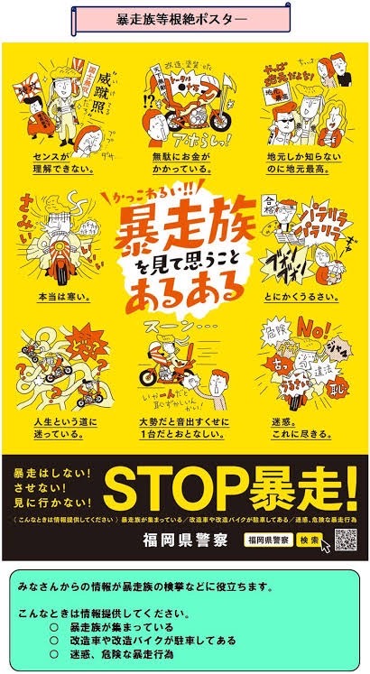 福岡県警「\かっこわるい!!/暴走族をみて思うことあるある」