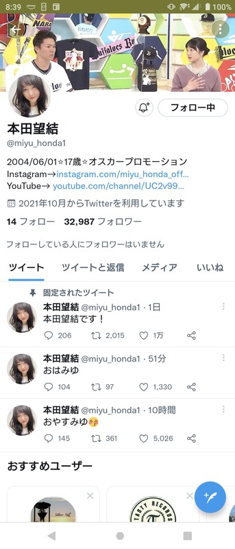 【悲報】本田望結さん公式Twitter開設するも、おじさんをフォローしまくる