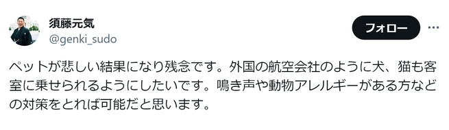 大物格闘家「飛行機の客席に犬猫を乗せられるようにしたい。アレルギーの人は対策すればいい」