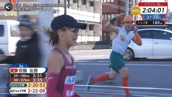 【画像】大阪国際女子マラソンで乳首おじさんが並走する放送事故 陸連ブチギレ