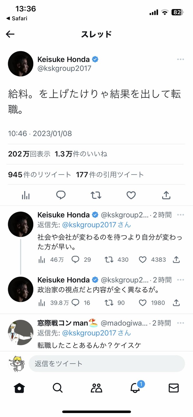 【正論?】本田圭佑さん「給料が上げたきゃ結果を出して転職しろ。社会を恨む前に自分を変えろ」