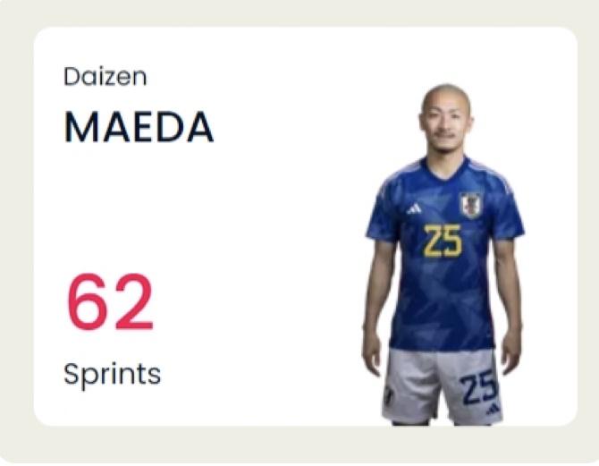 【朗報】前田大然さん、スペイン戦のスプリント回数wwwwwwwwww