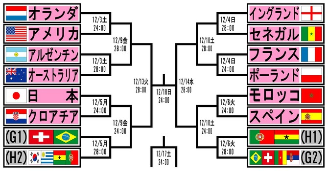 【朗報】日本さん、クロアチア→ブラジル→アルゼンチン→フランスを倒せば優勝wwwwwww