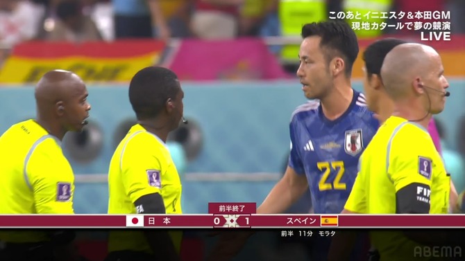 【速報】サッカー日本代表vsスペイン戦…0-1で前半終了…このままだとヤバい…
