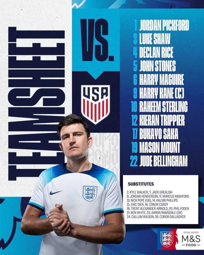 【速報】カタールW杯…イングランドvsアメリカ戦のスタメン発表wwwwwwwww