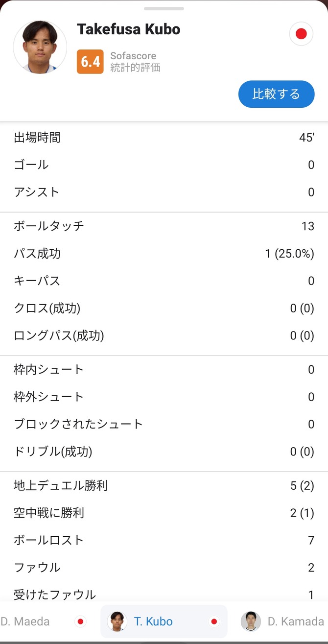 【悲報】久保建英さん、ドイツ戦のスタッツwwwwwwwwwwwww