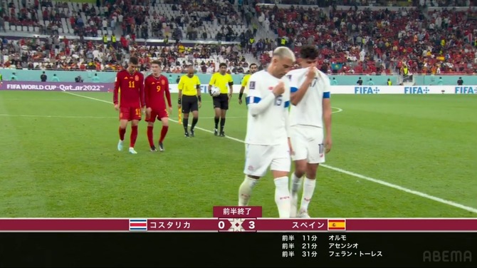 【速報】日本と同組スペインさん、前半だけでコスタリカをフルボッコにしてしまうwwwwwwww