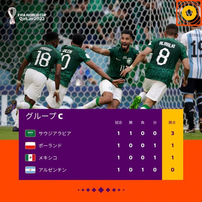 【悲報】ワールドカップグループC…1位サウジ2位ポーランド、3位メキシコ、4位アルゼンチン←これwwwwwww