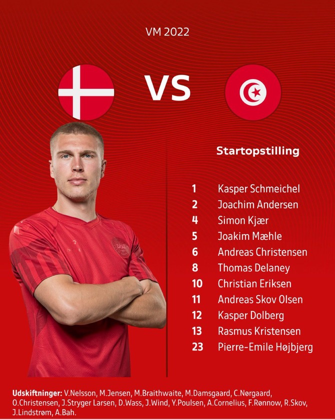 【速報】カタールW杯…デンマークvsチュニジアのスタメン発表wwwwwwwww