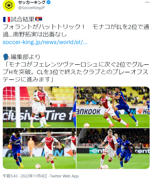 【速報】モナコ南野タキ…EL出番なしでW杯に備えて力を温存してる模様wwwww