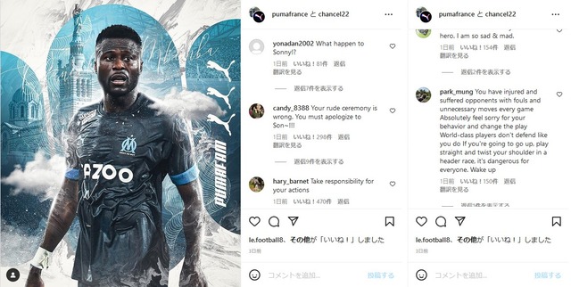 【悲報】ソンフンミンと衝突した選手のインスタ…韓国人に荒らされてしまう…