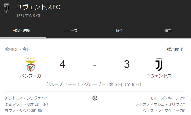 【速報】ユベントスさん、ベンフィカ相手に負けてCL敗退wwwwwwwww