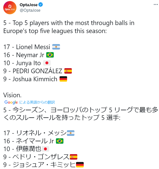 【朗報】伊東純也さん、欧州5大リーグのスルーパスランキングでメッシ、ネイマールに続き3位にwwwwwww