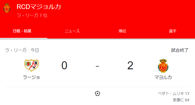 【朗報】マジョルカさん、イガンイン&ムリキのゴールで勝利キターー!!wwwwww