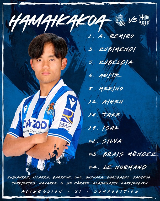 【速報】ソシエダ久保建英さん、バルサ戦もスタメンキターー!!wwwwww