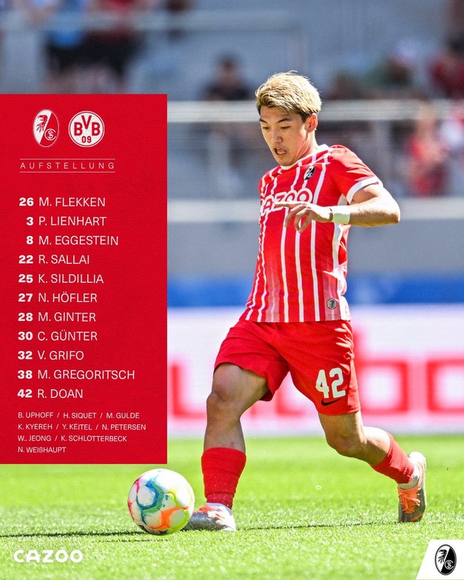 【速報】フライブルグ堂安律さん、ドルトムント戦スタメンキターー!!wwwwww