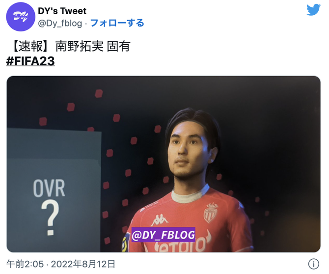 【速報】モナコFW南野タキ、FIFA23でようやく個顔キターー!!wwwww
