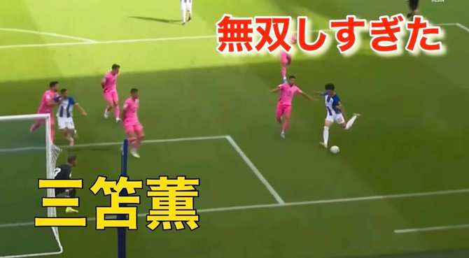 【動画】三笘薫さん、PSMエスパニョール戦でキレッキレのドリブル突破を魅せるwwwwwww