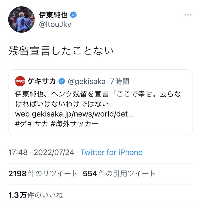 【悲報】ヘンクに残留宣言と報じられた伊東純也さん反論…「残留宣言したことない」