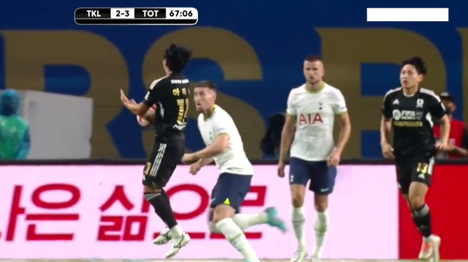 【悲報】韓国リーグの日本人選手さん、トッテナムとの試合でとんでもないハンドしてしまうwwwwww