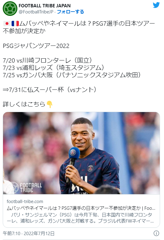 【悲報】ムバッペやネイマールは?PSG7選手の日本ツアー不参加が決定か…