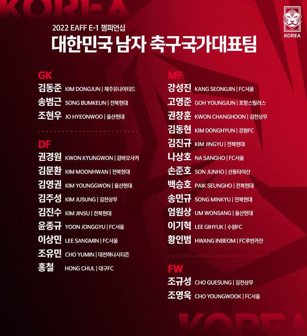 【速報】E-1選手権に臨む韓国代表メンバー26名が発表wwwwww