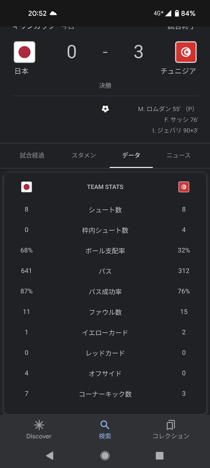 【悲報】サッカー日本代表、チュニジア戦のスタッツwwwwwwwwwww