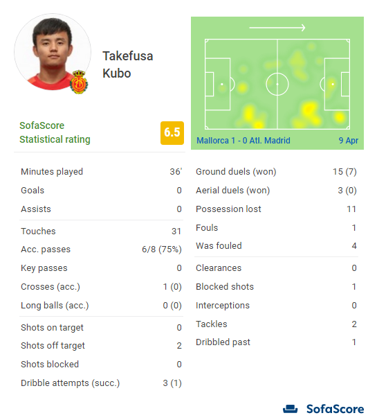 【速報】マジョルカ久保さん、アトレティコ戦のスタッツwwwww