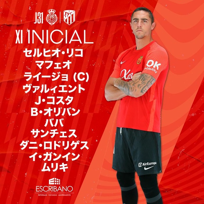 【速報】マジョルカ久保さん、まさかのアトレティコ戦ベンチスタート…なおイガンイン先発