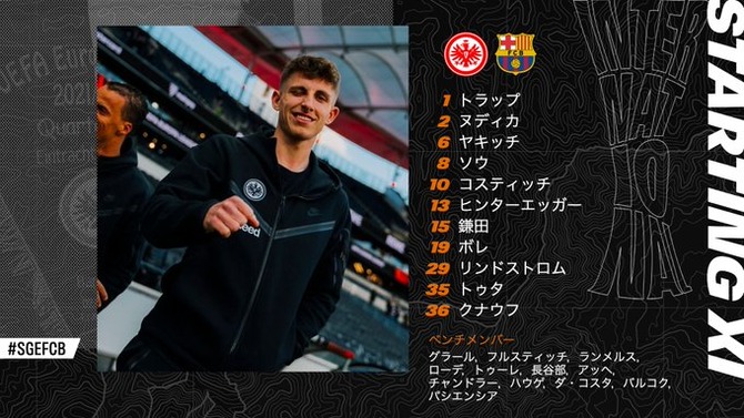【速報】フランク鎌田大地さん、バルサ戦スタメンキターー!!wwwww