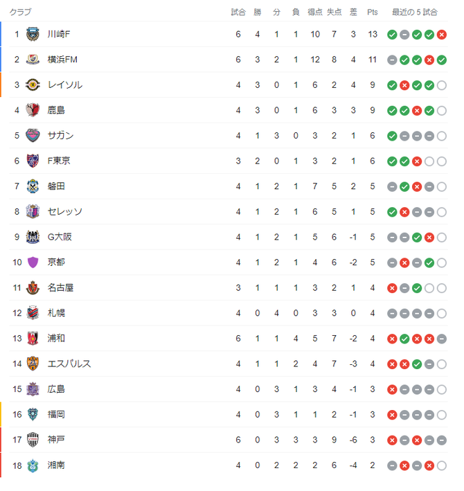 【悲報】Jリーグさん、順位が波乱過ぎるwwwwwwwwwwww