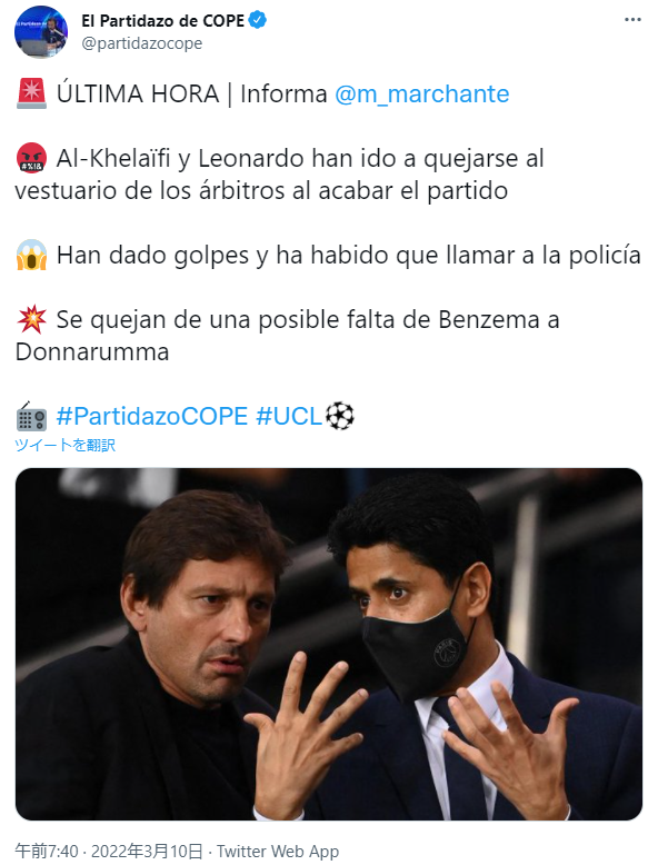 【緊急悲報】パリの会長とレオナルドSDが試合後に審判に暴行で逮捕wwwwwww