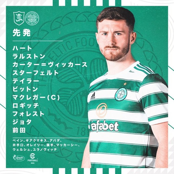 【速報】セルティック前田さん、スタメン!なお…旗手は初のベンチスタートに…