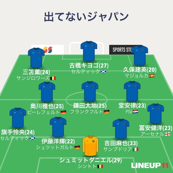 【速報】サッカー日本代表、未召集のメンバーでもスタメン組める模様wwwww