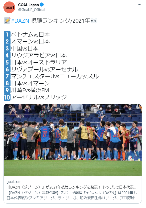 【朗報】DAZN(ダゾーン)年間視聴ランキングトップ10発表wwwwwwwwww