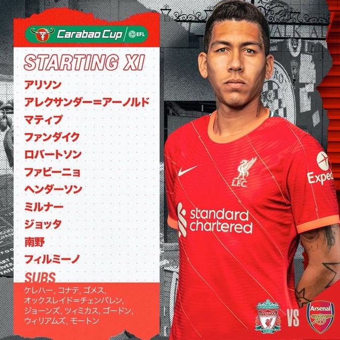 【速報】リバプール南野タキ、アーセナル戦スタメンキターー!!wwwwなお…冨安さんベンチ外