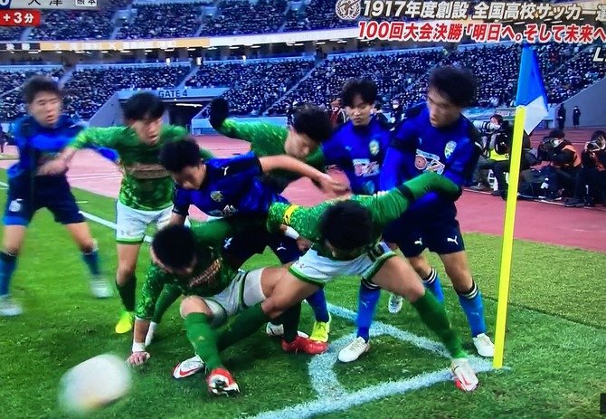 【画像】高校サッカーさん、決勝で執念のラグビーをしてしまうwwww