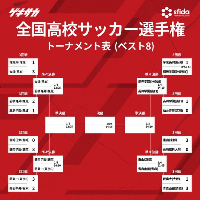 【速報】高校サッカー選手権…ベスト8決定wwwwwwwwwww